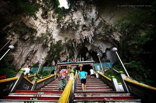 Batu Caves is a limestone hill that contains a series of caves and cave temples. It’s main attraction is the big statue of the Hindu God at the entrance. (Image Source: Christopher Chan)